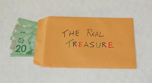 It took some thinking, but the participants soon realized that the U-shaped tube was a clue for "Youtube". Using the nearest phone, they quickly went to Youtube and searched using the words written on the plastic tube. Their efforts were rewarded with this video. (Much of the extra footage at the end of the video was to ensure they didn't just skip to the end to find the hiding place). Upon locating the real treasure, they were rewarded. |