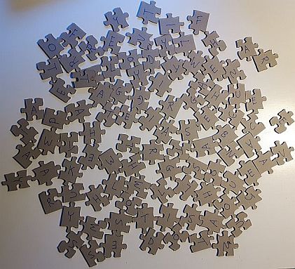 I have mixed feeling about this year's hunt. The letters on the back of the jigsaw puzzle, was, by far, the best idea I've had in any of my Easter hunts. But while the idea was great, my choice of the content - the names of songs from an album of which no one was familiar - was not. A better idea would have been to have the letters be a riddle or word puzzle that had to be solved in order to find the key. Ah well, live and learn. But at least the participants did put away all those CDs... |